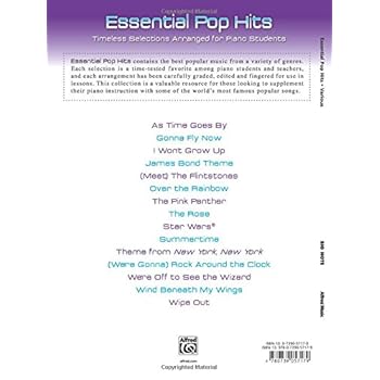 Essential Pop Hits contains the best popular music from a variety of genres. Each selection is a time-tested favorite among piano students and teachers, and each arrangement has been carefully graded, edited and fingered for use in lessons. This collection is a valuable resource for those looking to supplement their piano instruction with some of the world's most famous popular songs. Titles: As Time Goes By * Gonna Fly Now * I Won't Grow Up * James Bond Theme * (Meet) The Flintstones * The Pink Panther * Star Wars (Main Title) * Summertime * Theme from New York, New York * (We're Gonna) Rock Around the Clock * We're Off to See the Wizard * Wind Beneath My Wings * Wipe Out. 40 pages.