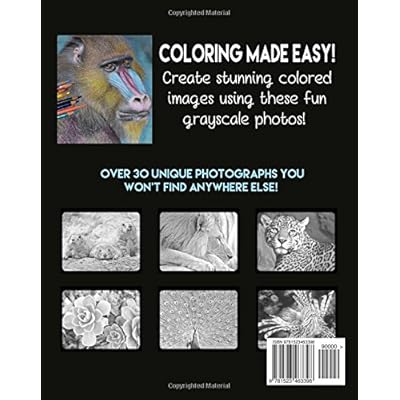 Unlike most coloring books, this book features grayscale photographs to color! You simply color over the lightened photograph with colored pencils, chalk or pastels, and you will have a realistic looking colored image! This book features all original photography you won't find anywhere else. This book has flowers, tigers, jaguars, lions, bears, and more!