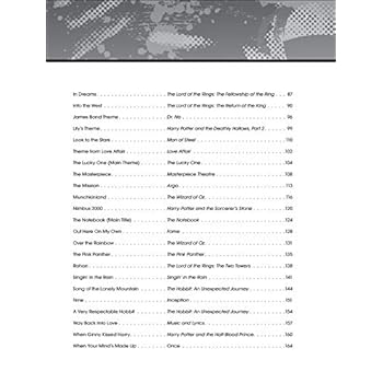 Experience the magic of over 75 years of entertainment history! This incredible volume contains dozens of cherished movie and TV themes by some of Hollywood's greatest composers and songwriters. Arranged by Dan Coates, this easy piano collection is great for movie and music lovers of all ages! Titles: Anne of Green Gables: Anne's Theme * Argo: The Mission * Armageddon: I Don't Want to Miss a Thing * August Rush: August Rush Rhapsody (Piano Suite) * Batman (TV series): Batman Theme * Batman Begins: Corynorhinus * The Big Bang Theory: Main Title * Corpse Bride: Main Title * The Dark Knight: The Dark Knight Overture * Downton Abbey: Downton Abbey: The Suite * Dr. No: James Bond Theme * Extremely Loud & Incredibly Close: Main Theme * Fame: Out Here On My Own * Gilligan's Island: The Ballad of Gilligan's Isle * Harry Potter and the Deathly Hallows, Part 2: Lily's Theme * Harry Potter and the Half-Blood Prince: Harry and Hermione, When Ginny Kissed Harry * Harry Potter and the Sorcerer's Stone: Harry's Wondrous World, Hedwig's Theme, Nimbus 2000 * The Hobbit: An Unexpected Journey: The Adventure Begins, Song of the Lonely Mountain, A Very Respectable Hobbit * Inception: Time * The Lord of the Rings: The Fellowship of the Ring: Concerning Hobbits, In Dreams * The Lord of the Rings: The Return of the King: Into the West * The Lord of the Rings: The Two Towers: Rohan * Love Affair: Theme from Love Affair * The Lucky One: Main Theme * Mamma Mia!: Dancing Queen, I Have a Dream * Man of Steel: Flight, Look to the Stars * Masterpiece Theatre: The Masterpiece * Music and Lyrics: Way Back Into Love * The Notebook: Main Title * Once: Falling Slowly, When Your Mind's Made Up * The Pink Panther: The Pink Panther * The Polar Express: Believe * Rock of Ages: